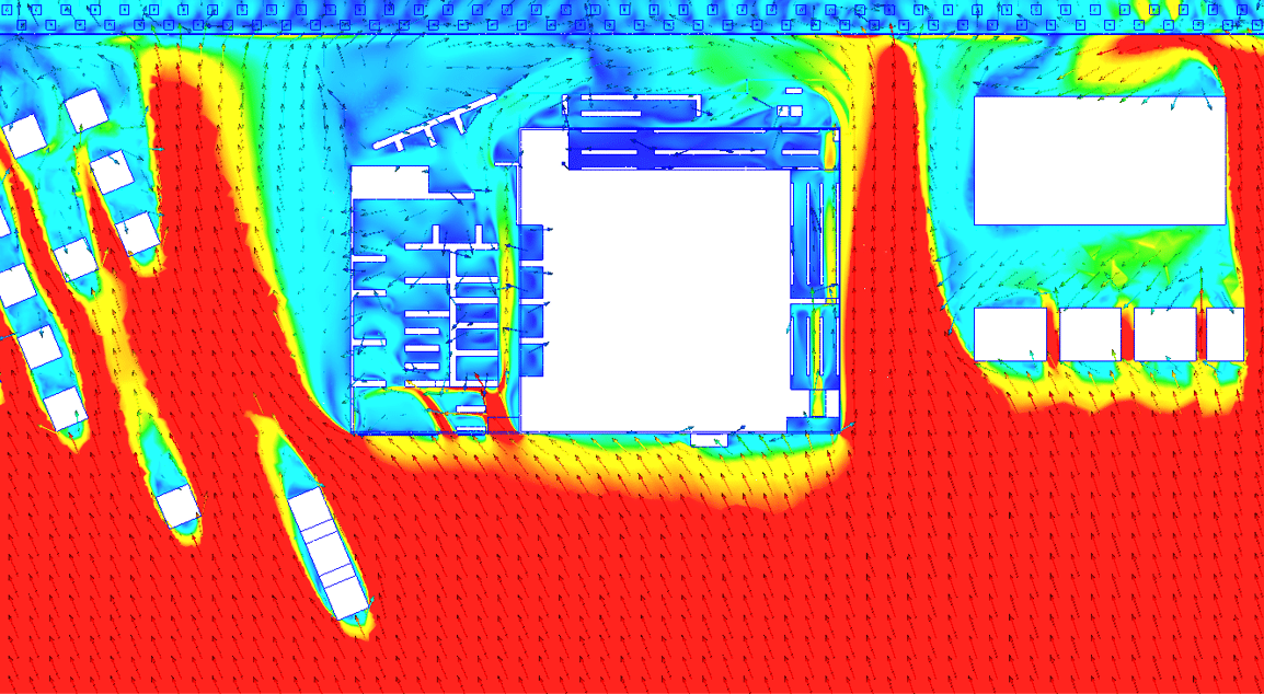 Los resultados muestran cómo se estructura el viento en cada lugar y por qué determinadas configuraciones son especialmente perjudiciales para las operaciones. Revela los sectores más sensibles y pone de relieve los mecanismos que conforman los flujos alrededor del edificio.