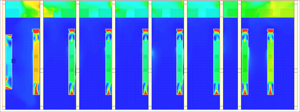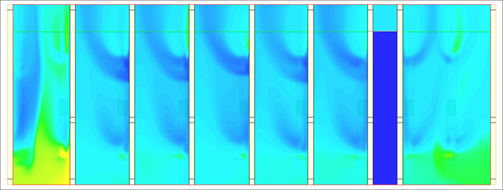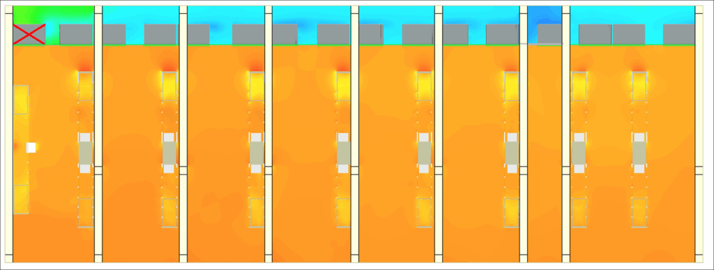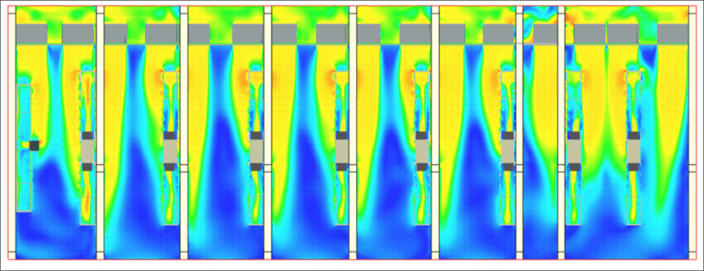 La simulación CFD no es una solución genérica, sino una herramienta práctica de ingeniería adaptada a las necesidades reales, capaz de proporcionar una comprensión detallada y operativa de los fenómenos termo-aerodinámicos en un entorno temporal o inestable. En particular, permite asegurar la fase de prueba garantizando que el comportamiento térmico de la sala sigue cumpliendo los requisitos, incluso en condiciones extremas de carga o en caso de avería de los equipos.