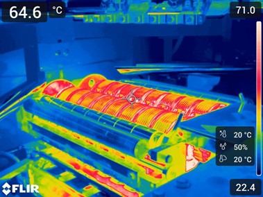 Un estudio realizado con una cámara térmica revela la presencia deelementos calefactores vinculados al sellado de bolsitas y otros dispositivos, cuya temperatura aumenta hasta 65°C, lo que puede alterar localmente los flujos de aire y crear zonas de ascenso.
