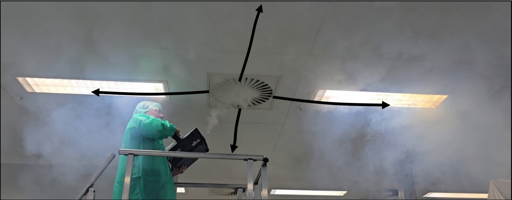 Por último, se comprobó que las partículas se esparcían por el pasillo, lo que permitía a los usuarios pasar de una línea a otra, creando una fuente potencial de contaminación.