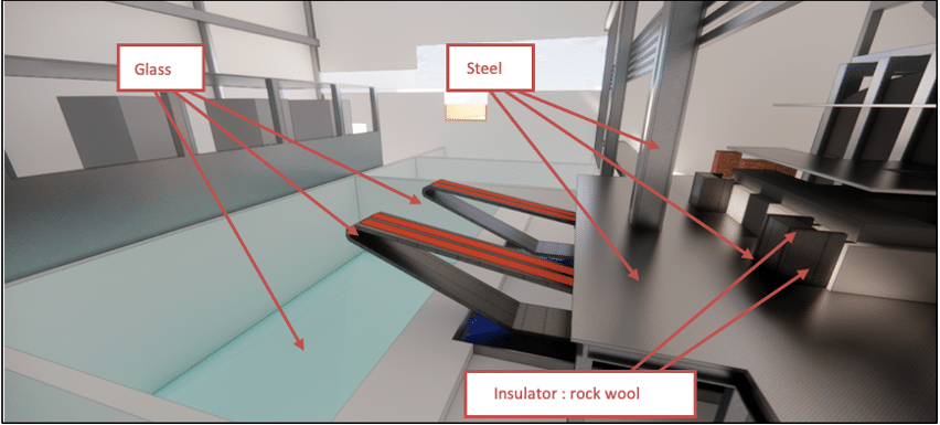 El estudio comparó varias variantes de diseño para limitar este calentamiento. En los casos en que se coloca aislamiento bajo la plataforma, aumentan las temperaturas debajo de ésta, debido a la menor disipación de calor. Por el contrario, la adición de escudos antirradiación de aluminio con refuerzo aislante, colocados entre la colada y las vigas, proporciona una protección eficaz a la estructura.