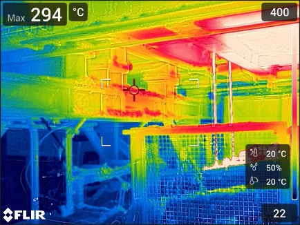 Se llevaron a cabo inspecciones con cámaras termográficas para identificar las zonas sometidas a altas temperaturas, sobre todo alrededor de las vigas de carga, la colada y los fosos.