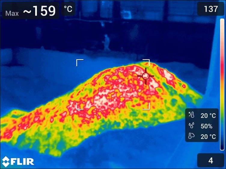 Por último, estos fenómenos tienen un impacto directo en las condiciones de trabajo en los espacios ocupados. La ausencia de aberturas hacia el sur, la adición de lonas para limitar el polvo o la configuración de los fosos pueden provocar un sobrecalentamiento localizado en determinadas zonas sensibles del edificio: plataformas de vertido, zonas de circulación, entreplantas o salas de instalaciones. En algunos casos, se detectaron diferencias de temperatura de +10 a +15°C con respecto a la temperatura exterior. Esta situación puede provocar incomodidad térmica a los operarios, e incluso estrés en los equipos, sobre todo en las condiciones de verano modelizadas.